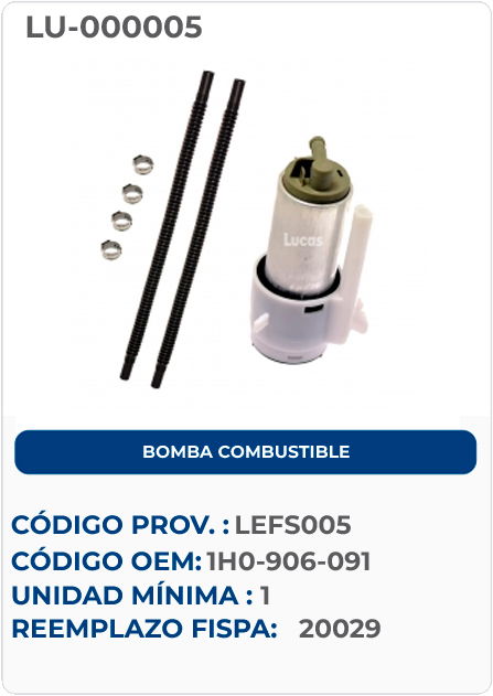 AplicacionesBOMBA ELECTRICA: VW POLO (TODOS) VENTO (TODOS), PASSAT I 1,6 / 2,0, VW GOLF (TODO), SEAT CORDOBA (TODOS), SEAT IBIZA II 1,4 , FORD GALAXY (TODOS) BOMBA FINA