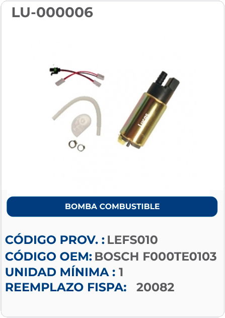REF. ORIG._ BOSCH F000TE0103 REEMPLAZA MARELLI - MAM 210 - 3 BAR - 90L/H - 12 VOLTS